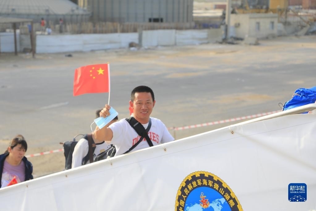 4月29日,從蘇丹撤離的中國公民乘坐中國海軍微山湖艦抵達(dá)沙特阿拉伯吉達(dá)港。新華社記者 王海洲 攝