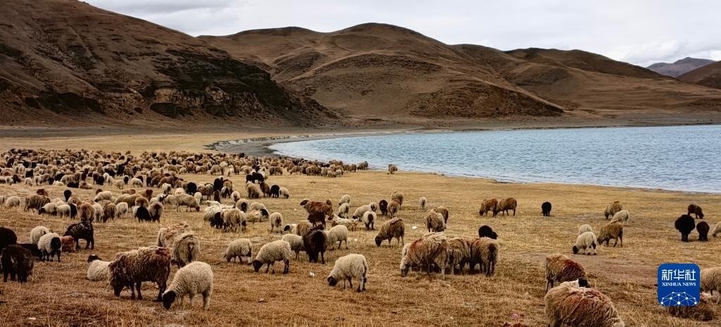 羊卓雍錯湖邊的羊群(5月1日攝,手機(jī)照片)。