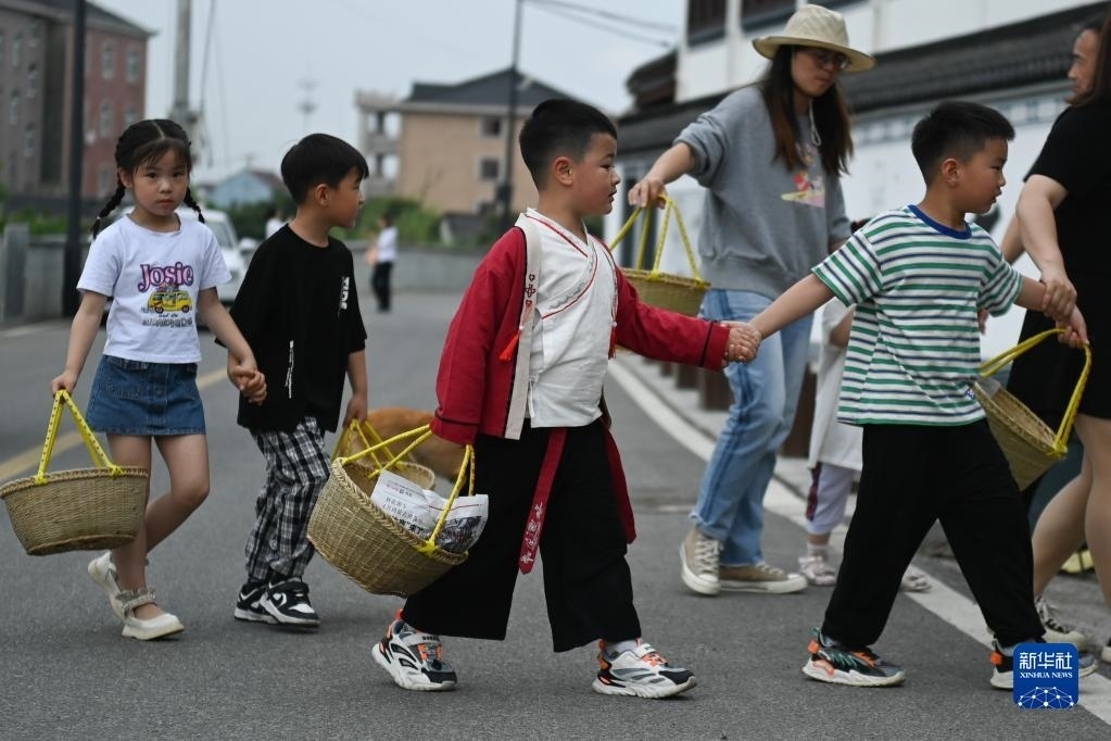 臨近立夏節(jié)氣,浙江省杭州市臨平區(qū)塘棲鎮(zhèn)丁山河村的村民們做米塑“立夏狗”、腌灰鴨蛋、搭土灶蒸“野米飯”等,用江南水鄉(xiāng)傳統(tǒng)的民俗迎接初夏。新華社記者 黃宗治 攝