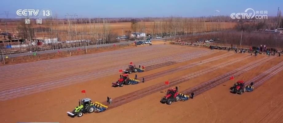 眼下,新疆瑪納斯縣65萬畝棉花全面開播。在文家莊村的棉田里,五臺裝有北斗導(dǎo)航系統(tǒng)的大馬力拖拉機,正按照預(yù)先設(shè)定的播種線路,進行精量播種。