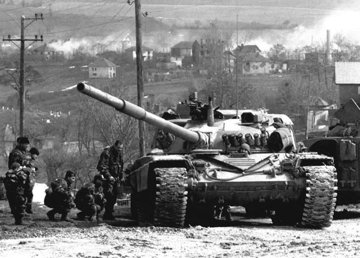 這是1999年3月24日,南聯盟軍隊的一輛坦克在科索沃省德雷尼察地區(qū)待命,隨時準備戰(zhàn)斗。新華社發(fā)