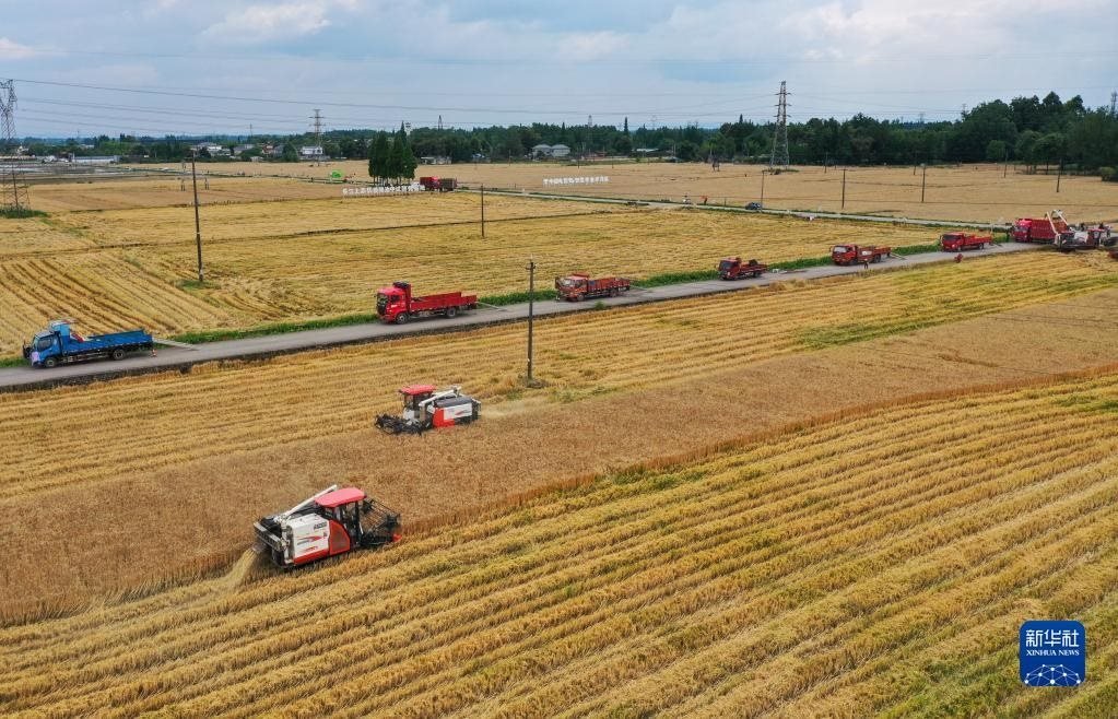 目前,四川省各地農(nóng)民搶抓農(nóng)時(shí),進(jìn)行夏收、夏種、夏管等作業(yè)。   新華社記者 沈伯韓 攝