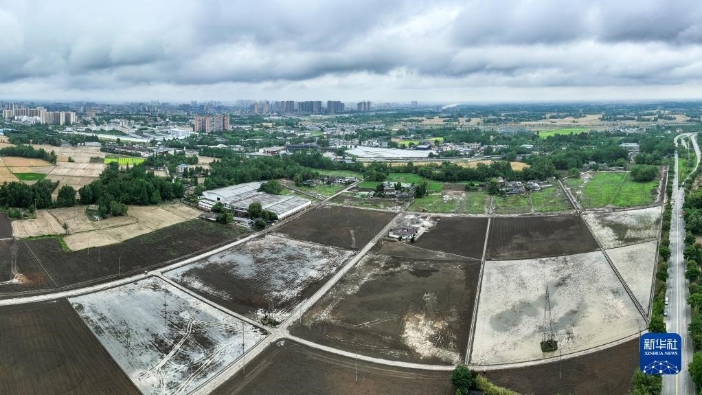 這是5月9日在四川省崇州市道明鎮(zhèn)協(xié)和社區(qū)航拍的一片高標(biāo)準(zhǔn)農(nóng)田(無(wú)人機(jī)照片)。   新華社記者 沈伯韓 攝