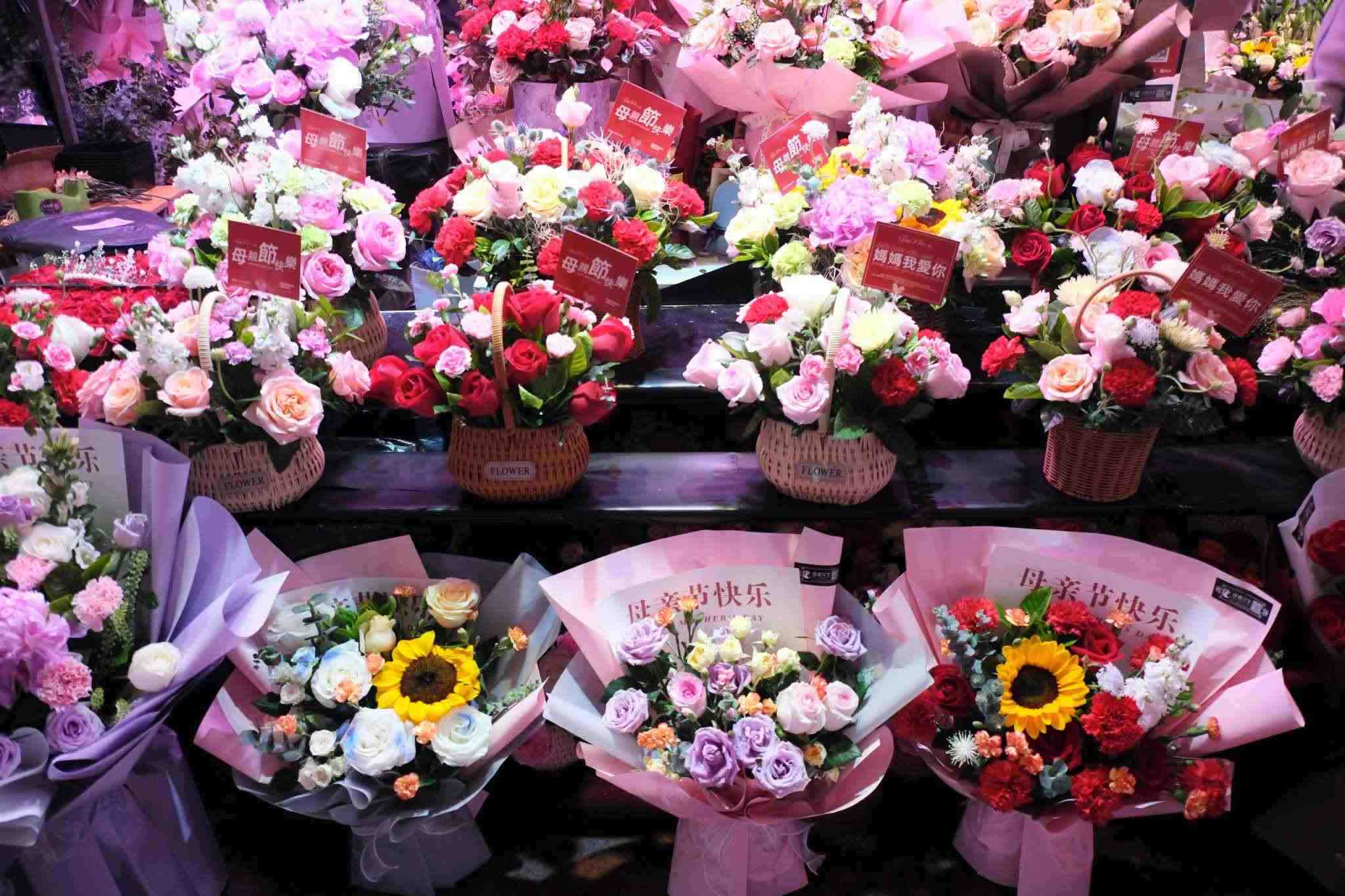 2023年5月13日,沈陽,母親節(jié)到來之際,和平區(qū)中山公園旁鮮花市場,一片忙碌景象。視覺中國