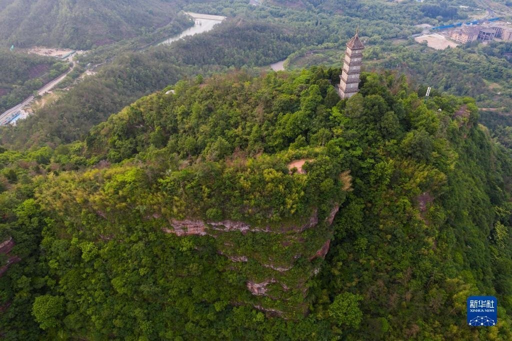 俯瞰天臺(tái)縣的赤城山及山頂?shù)牧哄?月16日攝,無(wú)人機(jī)照片)。