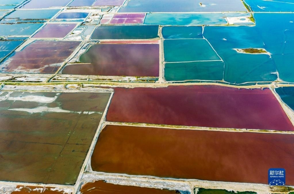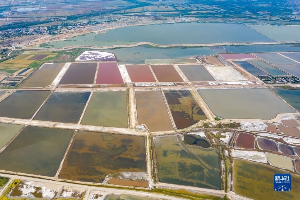 這是5月17日拍攝的運(yùn)城鹽湖一景(無人機(jī)照片)。