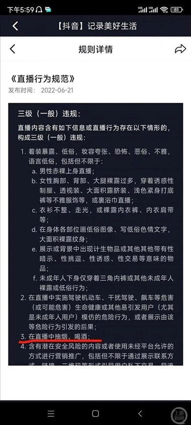 ·網(wǎng)紅“三千哥”直播PK喝酒后去世,平臺規(guī)定直播中喝酒屬于三級違規(guī),有律師表示其行為自擔(dān)風(fēng)險(xiǎn),很難追責(zé)。