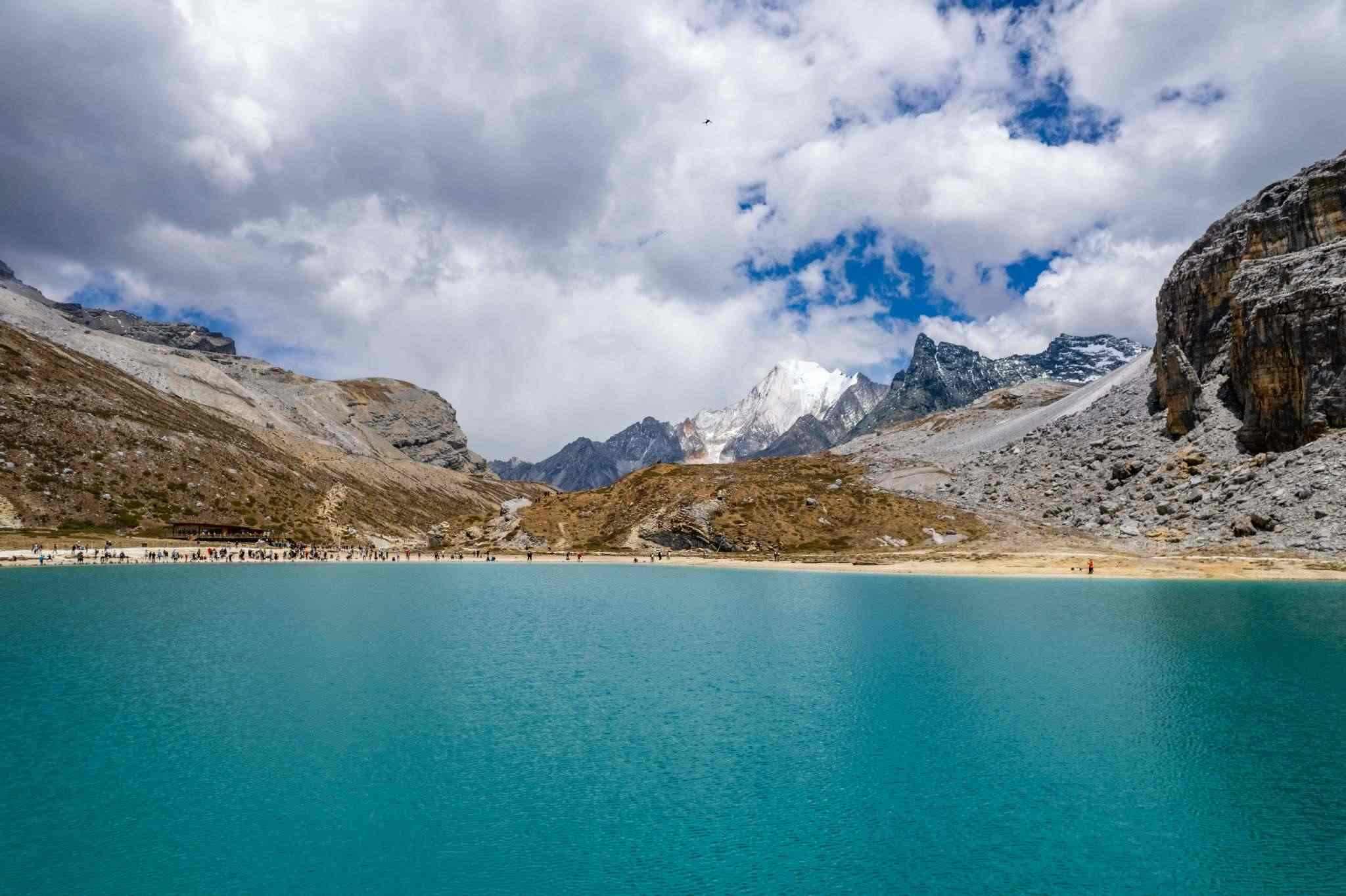 2023年5月25日,四川甘孜,航拍稻城縣亞丁自然保護(hù)區(qū)的牛奶海景區(qū)。視覺中國(guó)