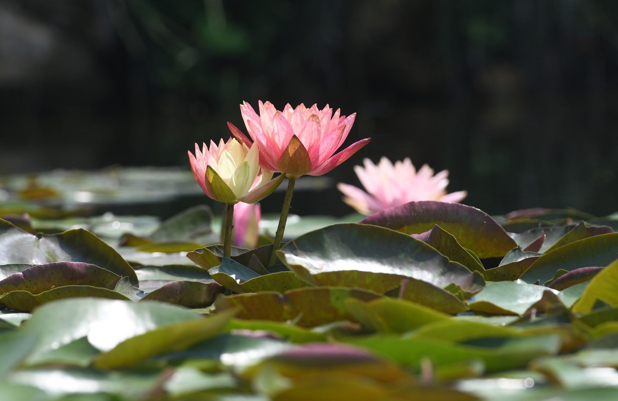 杭州良渚古城雙色睡蓮綻放