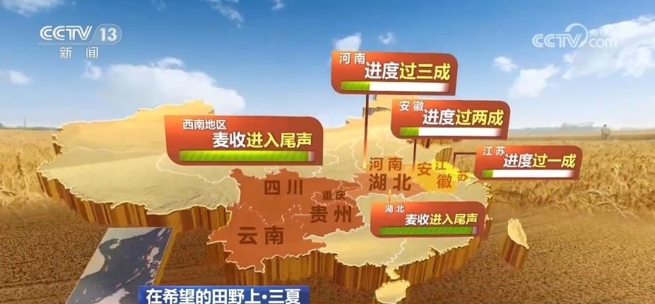 農(nóng)業(yè)農(nóng)村部小麥機收調度顯示,目前,全國已收冬小麥面積7500多萬畝,麥收進度過兩成。其中,西南地區(qū)、湖北麥收進入尾聲;河南進度過三成、安徽進度過兩成、江蘇進度過一成。