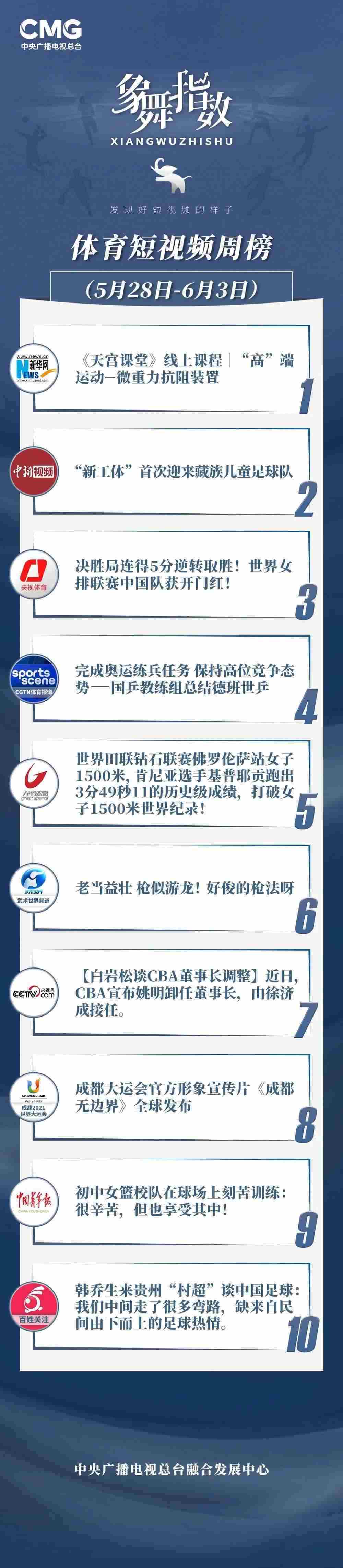 象舞指數(shù)|體育短視頻周榜(5月28日—6月3日)
