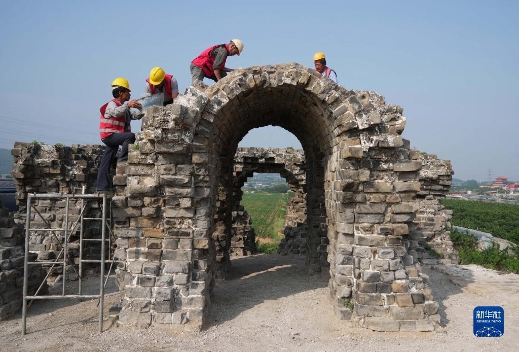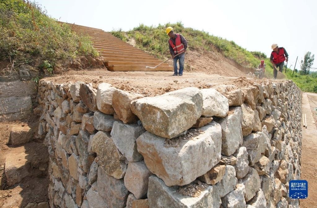 近日,河北省秦皇島市山海關區(qū)山海關長城保護展示工程——腰鋪9號敵臺和51號墻臺馬道保護修繕工程施工穩(wěn)步推進。據(jù)介紹,腰鋪9號敵臺和51號墻臺馬道是山海關長城軍事防御體系中重要的附屬設施。修繕工程預計7月底完工。新華社記者 楊世堯 攝