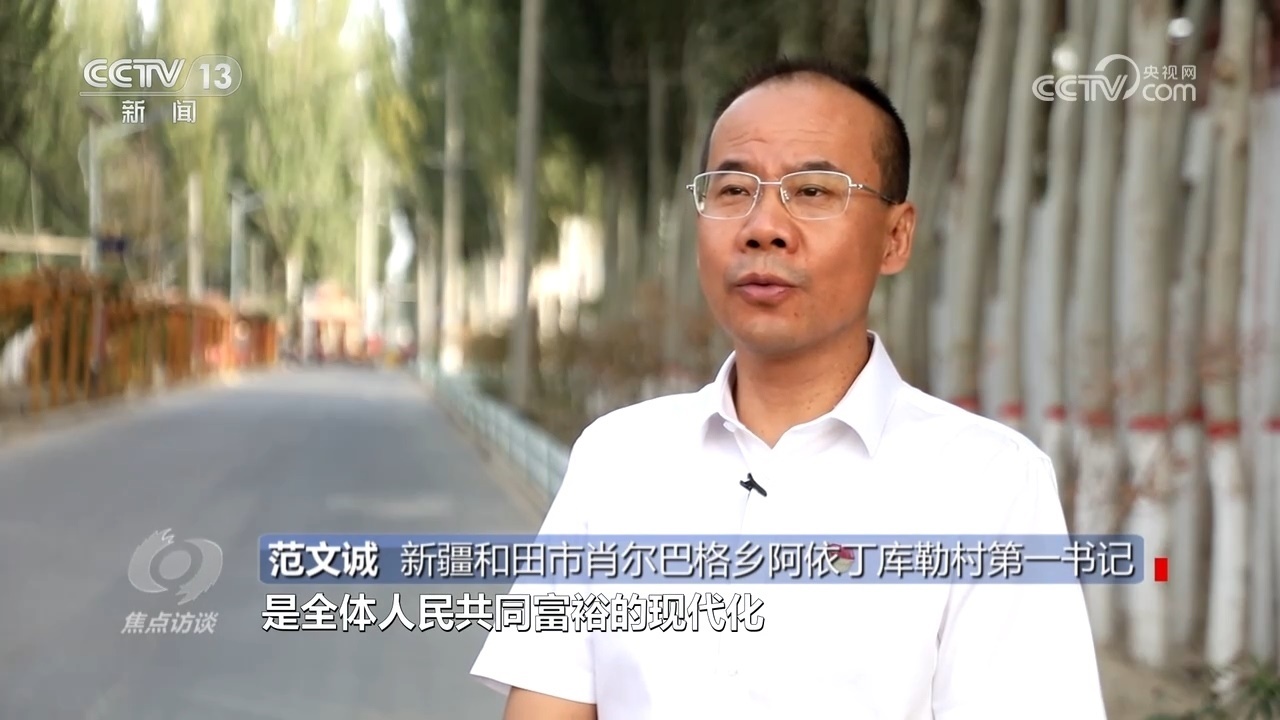 新疆和田市肖爾巴格鄉(xiāng)阿依丁庫(kù)勒村第一書記范文誠(chéng):“中國(guó)式現(xiàn)代化是人口規(guī)模巨大的現(xiàn)代化,是全體人民共同富裕的現(xiàn)代化,將理論聯(lián)系當(dāng)前的農(nóng)村實(shí)際相切合,要始終堅(jiān)持從人民出發(fā)、從實(shí)際出發(fā),分類確定建設(shè)發(fā)展模式、特色產(chǎn)業(yè)?!?/p>