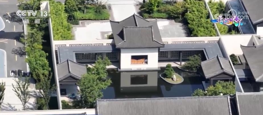 坡屋頂、灰瓦白墻,這里是金華的亞運(yùn)分村。這個(gè)村的建設(shè)非常具有金華特色,各個(gè)建筑的外形吸取了江南造園精髓,灰瓦白墻、小橋流水,各式綠植樹木沿著水系有序分布。