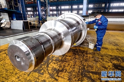 在位于黑龍江省齊齊哈爾市的中國一重生產(chǎn)車間內(nèi),工人正在進(jìn)行生產(chǎn)作業(yè)。