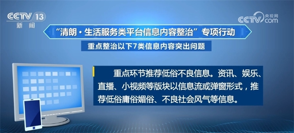 重點(diǎn)環(huán)節(jié)推薦低俗不良信息。資訊、娛樂、直播、小視頻等版塊以信息流或彈窗形式,推薦低俗庸俗媚俗、不良社會(huì)風(fēng)氣等信息。