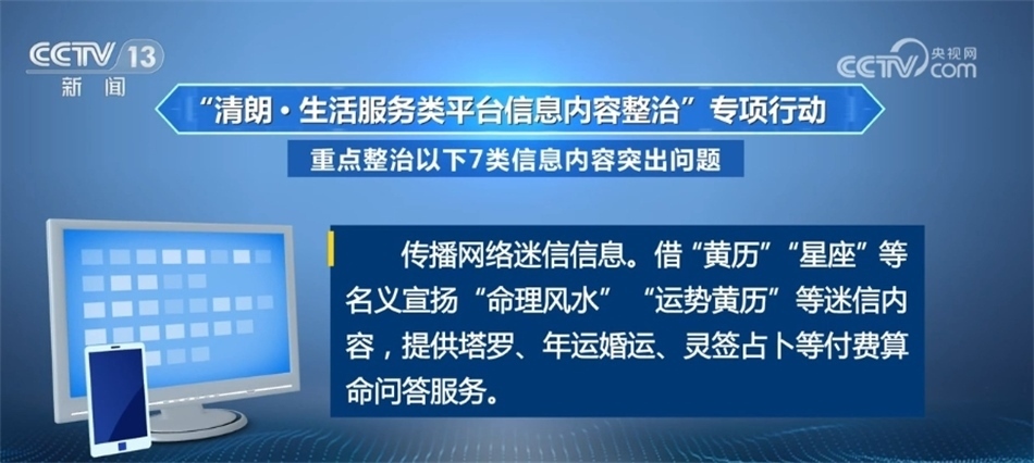 此次專項(xiàng)行動(dòng)覆蓋團(tuán)購評價(jià)、婚戀交友、搜索引擎、影視點(diǎn)評、天氣日歷、旅游出行、網(wǎng)絡(luò)購物、地圖導(dǎo)航、本地生活、運(yùn)動(dòng)健康、實(shí)用工具等各類生活服務(wù)平臺(tái),重點(diǎn)整治以下7類信息內(nèi)容突出問題?! ?/p>