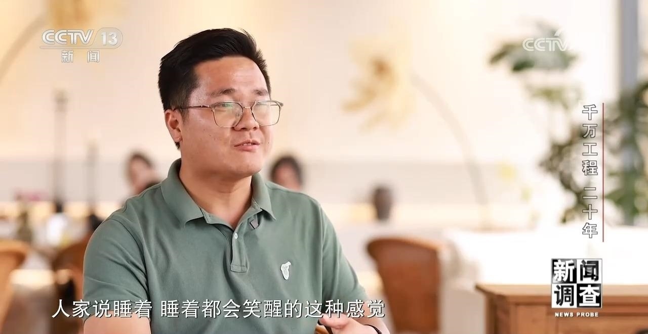 浙江安吉靈峰街道大竹園村返鄉(xiāng)創(chuàng)業(yè)青年 沈金龍:真正20多年,不管是經(jīng)濟還是質(zhì)感全部在提升,我們以前從來沒想過我們老百姓能住到像我們農(nóng)房試點這種房子,就是庭院、小橋流水這種房子,哪會想到,現(xiàn)在老百姓住在里面。而且不光是自己住,他還經(jīng)營起來了,還能靠著這個房子、這個環(huán)境變現(xiàn)。甚至我們現(xiàn)在都想想,人家說睡著、睡著都會笑醒的這種感覺,真是太美了。