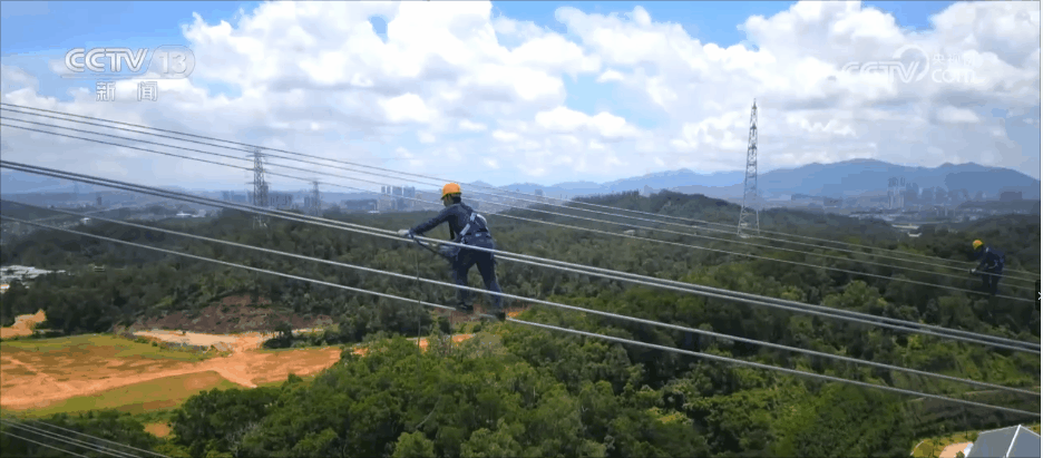 百米高空中,一段電網(wǎng)員工走線的視頻在網(wǎng)絡(luò)迅速走紅,視頻中的就是南方電網(wǎng)深圳供電局的輸電工作人員。當天,在做好安全防護后,他們頂著烈日,攀上相當于30多層樓高的百米高塔,對長達一公里的500千伏輸電線路開展走線驗收工作。