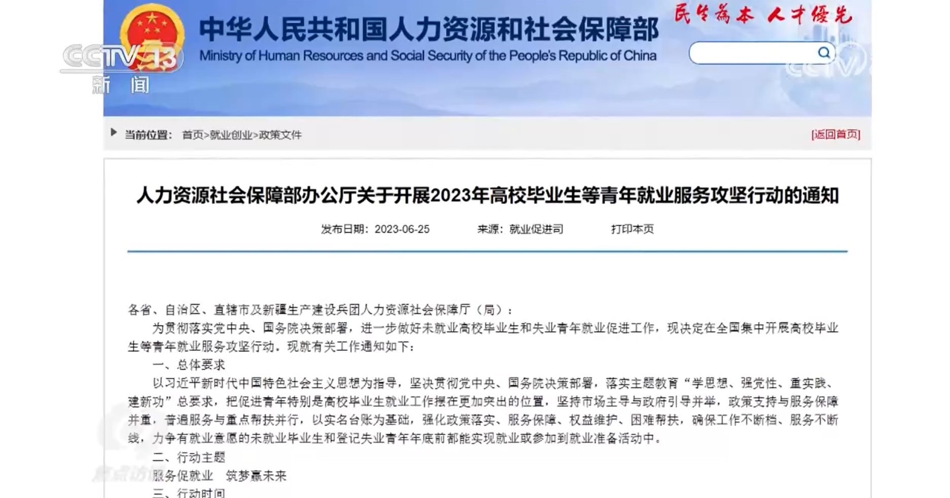 6月25日,人力資源社會保障部印發(fā)通知,部署啟動2023年高校畢業(yè)生等青年就業(yè)服務攻堅行動,要求省級人力資源社會保障部門7月底前,要建立2023屆未就業(yè)畢業(yè)生實名臺賬。