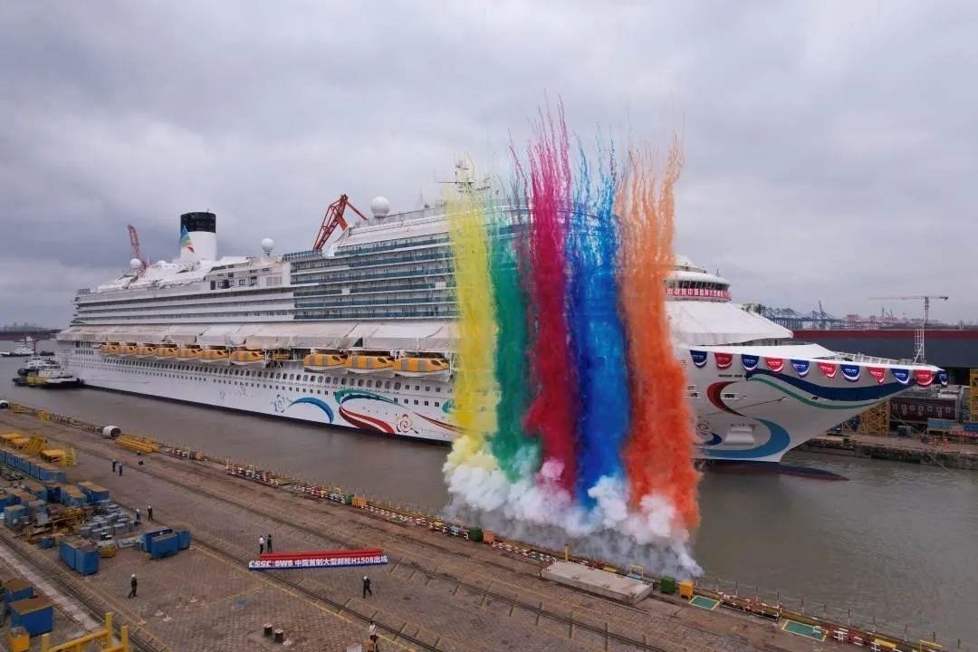 △2023年6月6日,首艘國產(chǎn)大型郵輪愛達(dá) 魔都號在上海外高橋造船廠完成塢內(nèi)系列試驗(yàn)后正式出塢。