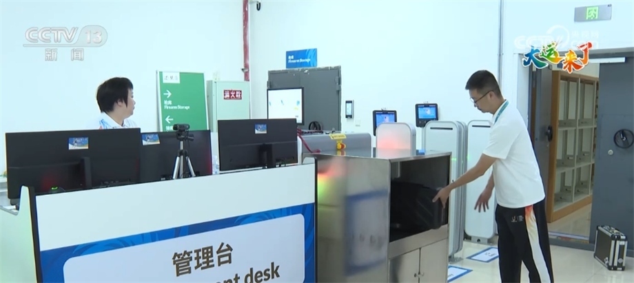總臺記者 王勝東:我現(xiàn)在就來到了射擊場館非常重要的一個區(qū)域——槍彈庫,這里通過人臉識別、芯片識別和這臺X光機,共同組成了一套安檢系統(tǒng),可以確保教練員和運動員在人、槍、彈分離的安全前提下快速、有效地通關(guān)、出入庫。