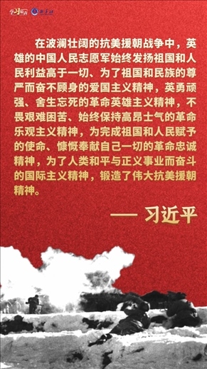 偉大抗美援朝精神跨越時空、歷久彌新。我們要銘記抗美援朝戰(zhàn)爭的艱辛歷程和偉大勝利,敢于斗爭、善于斗爭,知難而進、堅韌向前,把新時代中國特色社會主義偉大事業(yè)不斷推向前進。