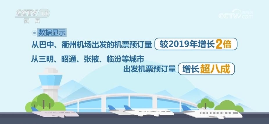 2023年暑運(yùn)期間,三四線航空市場(chǎng)開(kāi)始顯現(xiàn)出熱度。數(shù)據(jù)顯示,從巴中、衢州機(jī)場(chǎng)出發(fā)的機(jī)票預(yù)訂量較2019年增長(zhǎng)兩倍。從三明、昭通、張掖、臨汾等城市出發(fā)機(jī)票預(yù)訂量增長(zhǎng)超八成。