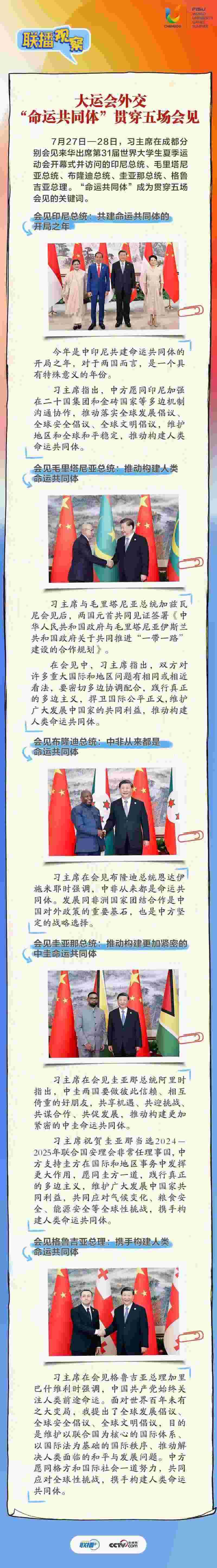 大運(yùn)會時(shí)間,我國重要的主場外交也同步拉開帷幕,習(xí)近平主席的日程格外繁忙。央視網(wǎng)《聯(lián)播+》帶您沉浸式感受這場青春盛會為世界送出的別具匠心的“四川禮物”。