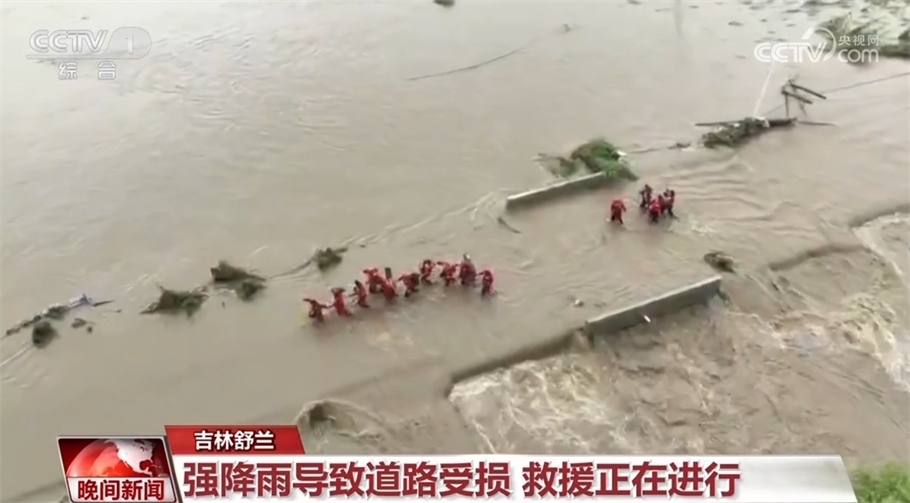 吉林省此輪最大降水量出現(xiàn)在舒蘭市永勝林場(chǎng),達(dá)到489毫米。強(qiáng)降雨導(dǎo)致舒蘭多地出現(xiàn)險(xiǎn)情,通往村屯的道路被損毀,救援人員進(jìn)入村屯展開(kāi)救援。