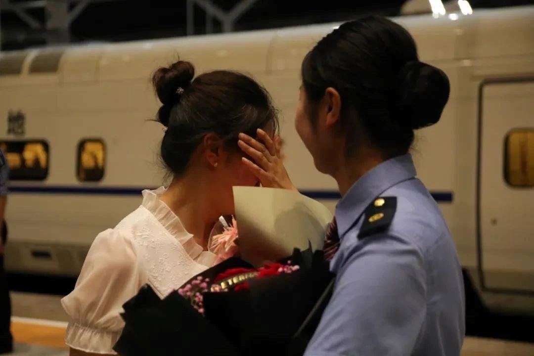 站臺上親人團(tuán)聚的一幕幕