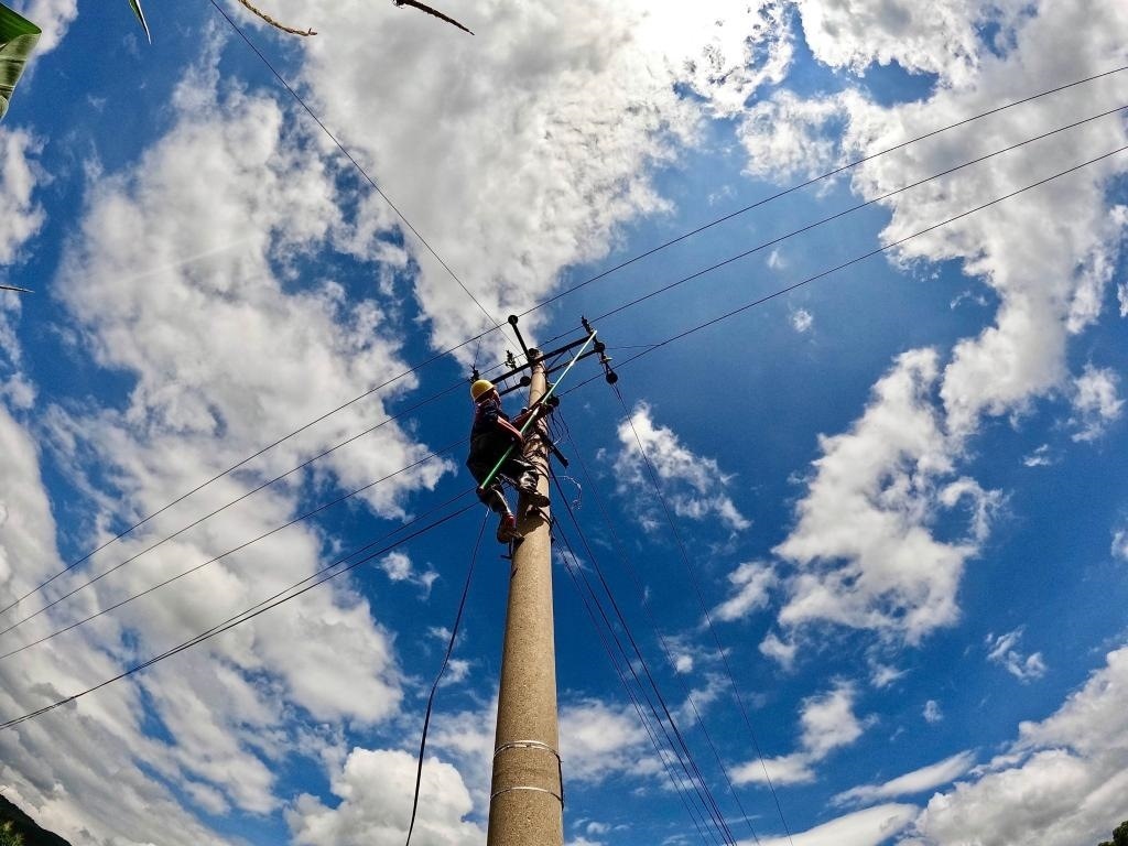 8月5日,電力搶修人員在進(jìn)行作業(yè)。(王潤澤 攝)