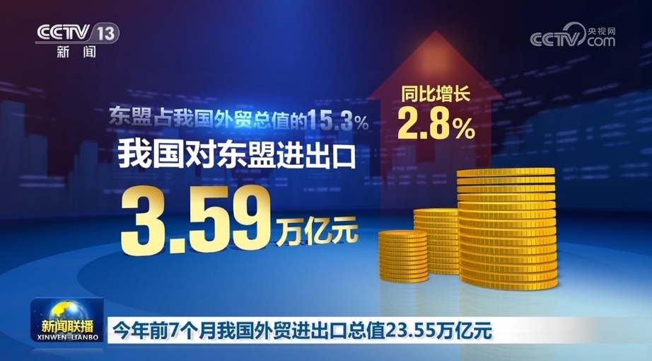 前7個(gè)月,我國(guó)對(duì)第一大貿(mào)易伙伴東盟進(jìn)出口3.59萬(wàn)億元,同比增長(zhǎng)2.8%。對(duì)中亞五國(guó)進(jìn)出口3316.9億元,同比增長(zhǎng)35%。對(duì)拉丁美洲、非洲分別進(jìn)出口1.92萬(wàn)億元和1.14萬(wàn)億元,同比分別增長(zhǎng)5.5%和7.4%。