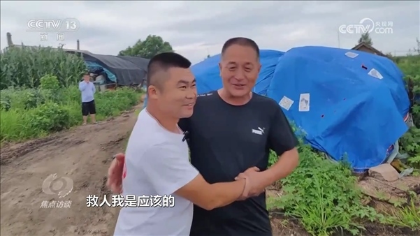 黑龍江五常市安家鎮(zhèn)鐵西村村民董明亮:“我直接搶過膠圈,鞋也沒脫,衣服也沒脫,手機(jī)還在兜里,直接就下去救他?!?/p>