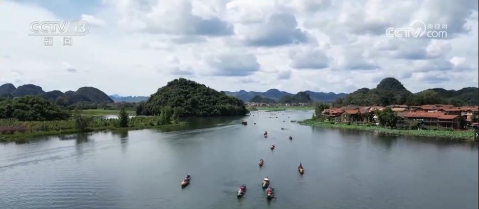 在云南普者黑,萬畝荷塘花開正盛,游人不僅可以泛舟賞荷嬉戲,還能進入當(dāng)?shù)貪O村感受彝族撒尼人生活文化和非遺技藝。