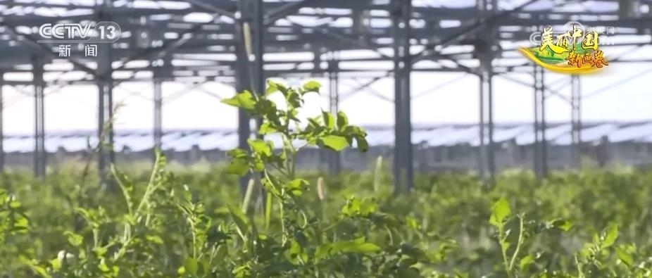 隨著防沙治沙技術(shù)的不斷迭代進(jìn)步,億利資源集團(tuán)引進(jìn)了光伏治沙的理念。現(xiàn)在,已經(jīng)升級(jí)到最新的第三代技術(shù)。離地8米的光伏板下面,種了馬鈴薯、西紅柿等作物,其中,馬鈴薯畝產(chǎn)能達(dá)到4000公斤,而且大型機(jī)械可以在里面作業(yè)。在利用光伏治沙的過(guò)程中,田旺和他的團(tuán)隊(duì)還開(kāi)創(chuàng)了畜禽草耦合治沙技術(shù),利用光伏板下的空間發(fā)展生態(tài)養(yǎng)殖。
