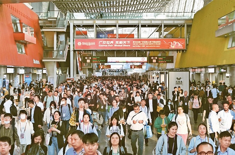 第133屆中國進(jìn)出口商品交易會(廣交會)線下展于2023年4月15日至5月5日分3期舉辦,同時線上平臺全年常態(tài)化運(yùn)營。本屆廣交會展覽面積、參展企業(yè)數(shù)量均創(chuàng)歷史新高,吸引220多個國家和地區(qū)的數(shù)十萬采購商報名參會。圖為4月26日拍攝的廣交會現(xiàn)場。 中新社記者 陳楚紅/攝
