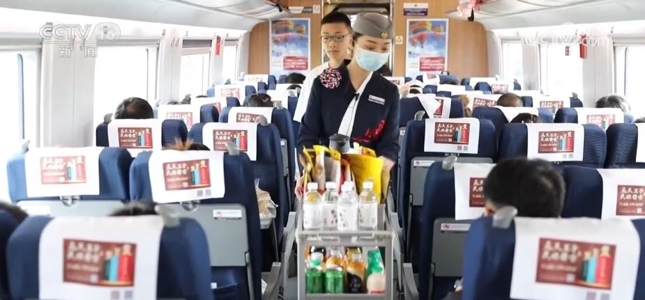 為了讓旅客在高鐵上有更多的美食選擇,高鐵移動(dòng)餐車(chē),每1小時(shí)前往各車(chē)廂送餐1次,旅客在選購(gòu)的同時(shí),也可以通過(guò)移動(dòng)餐車(chē)進(jìn)行訂餐服務(wù)。