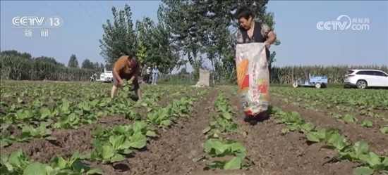 小義和莊村黨支部書記 王宇:我村在8月12號(改)種的白菜是240畝,水、肥、藥必須保障,在10月25號左右就到了收獲(期),現(xiàn)在每家每戶白菜的長勢都挺好。