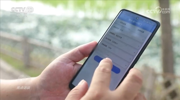 在林寨村的一個(gè)農(nóng)業(yè)基地里,江浩正在通過(guò)手機(jī)里的田間水利信息化系統(tǒng)開(kāi)閘門(mén),給1000多畝魚(yú)稻田排水。幾天前,受臺(tái)風(fēng)影響,當(dāng)?shù)卦庥隽藦?qiáng)降雨,田里積水有些多。