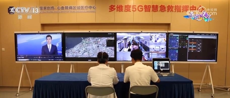 在大型5G移動急救復(fù)蘇單元工作時,院內(nèi)的5G急救指揮中心的電子大屏上,能夠?qū)崟r查看急救治療車內(nèi)的情況、患者監(jiān)護生命體征、車輛實時位置等信息,并進行實時的線上指導。