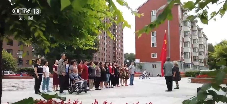 國慶假期,早上8時(shí),小區(qū)升旗儀式準(zhǔn)時(shí)開始。