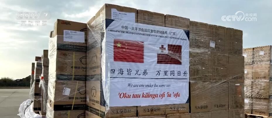空軍航空兵某團(tuán) 楊樹帥:當(dāng)時我們集裝的貨物上都印有一面中國國旗和(一面)湯加國旗,并印了一句中國古詩“四海皆兄弟,萬里同日升”。