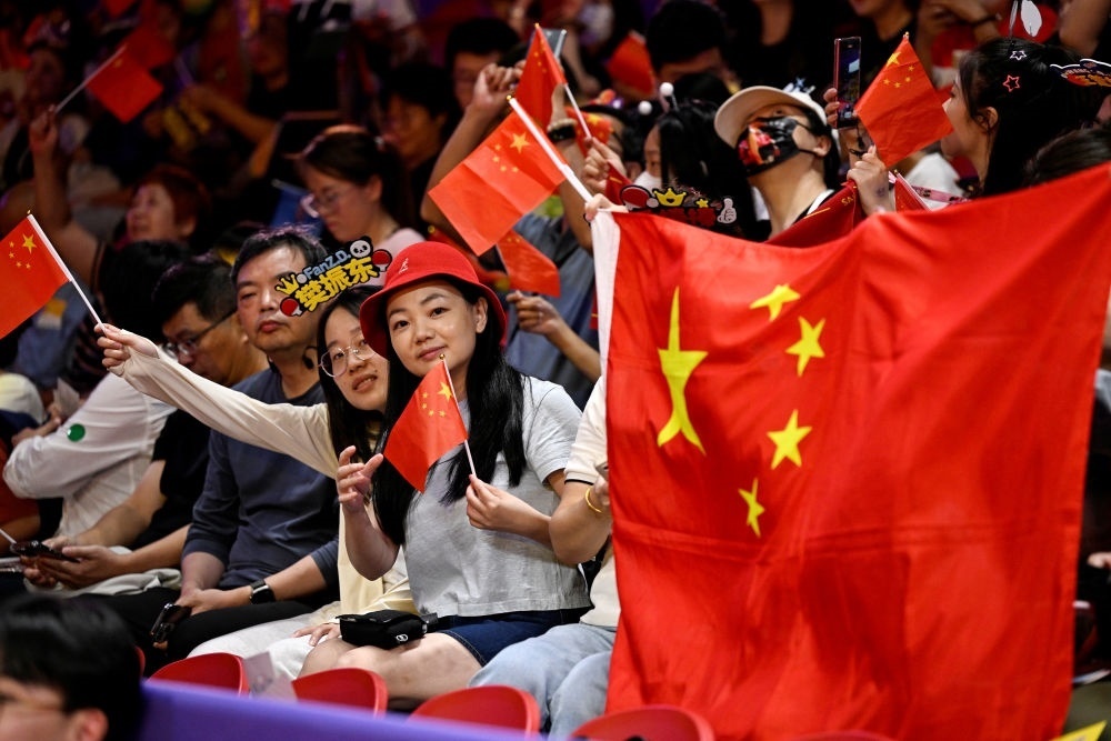 10月1日,觀眾在杭州亞運會乒乓球比賽現(xiàn)場為選手加油。新華社記者 王鵬 攝