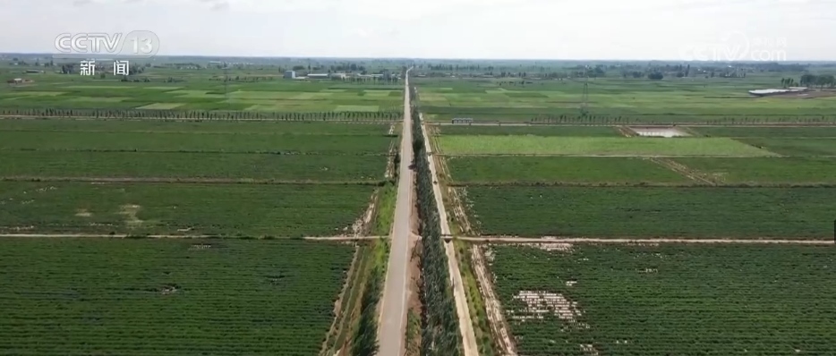 2017年,巴彥淖爾市規(guī)劃了484萬畝鹽堿化耕地“改鹽增草(飼)興牧”示范工程,拉開了全市改良鹽堿地的序幕。通過大規(guī)模土地整理,愛國村零散的土地被整合了起來?,F(xiàn)在行走在愛國村的田間地頭,遠(yuǎn)看路相連、渠相通、溝配套。近看有新的發(fā)現(xiàn),在地下40公分的位置,鋪設(shè)了一層秸稈,鹽隨水來、隨水去。在水分向上蒸發(fā)的同時,能保證鹽分被阻攔在秸稈下面,這個被稱為“上膜下秸”技術(shù)。而對于重度鹽堿地,當(dāng)?shù)卦诘叵?.8米的位置,每隔50公分鋪設(shè)了一些排水管道,能保證地下的水分隨時通過這些管道流到排水井里,最大程度地讓作物不受傷害,耕地質(zhì)量提高1—2個等級。