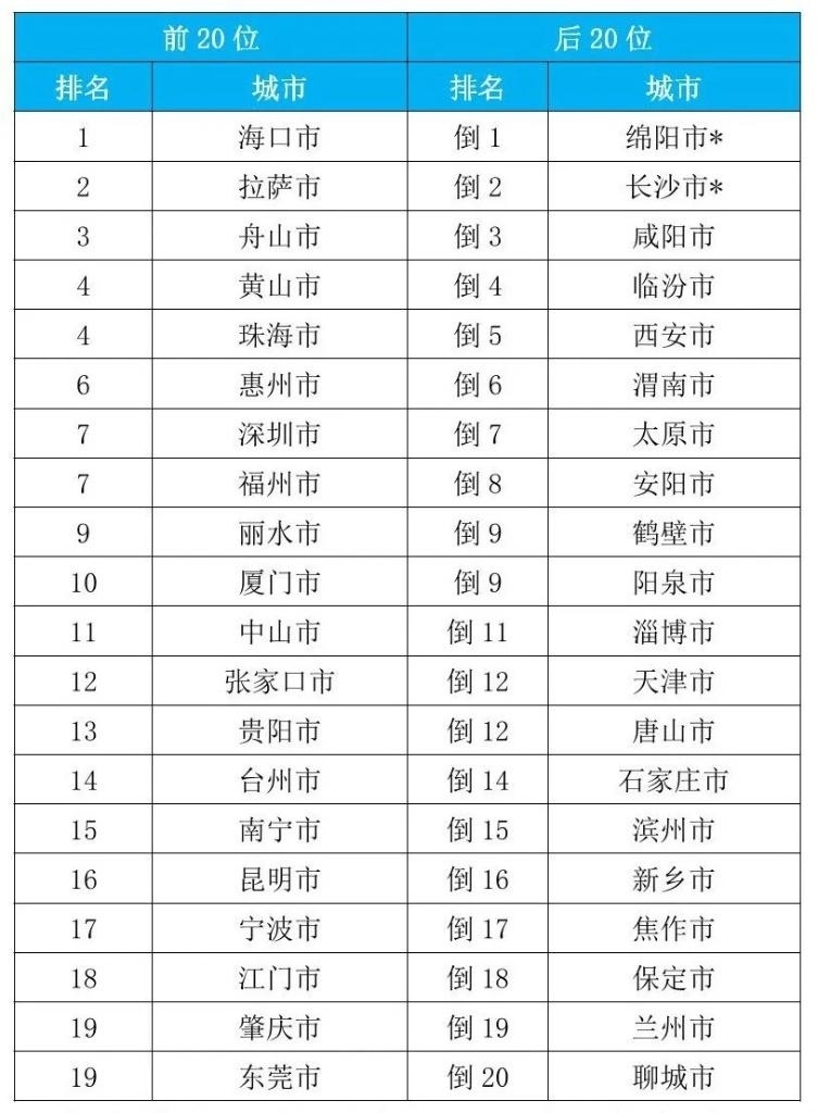 從重點城市排名看,1至9月,168個重點城市中,空氣質(zhì)量排名前20位城市依次是??凇⒗_和舟山等城市(從第1名至并列第19名);空氣質(zhì)量排名后20位城市依次是綿陽、長沙和咸陽等城市(從倒數(shù)第1名至倒數(shù)第20名)。據(jù)了解,綿陽市的一個監(jiān)測站點4月和5月、長沙市的一個監(jiān)測站點6月受到嚴重人為干擾,生態(tài)環(huán)境部對所在城市當(dāng)月六項污染物濃度進行了最大值替代處理。(記者高敬)