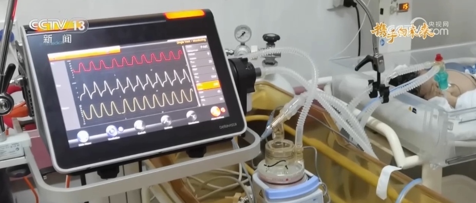這是一臺特殊的呼吸機。呼吸機主機是從當(dāng)?shù)蒯t(yī)院庫房找到的,主要用于急救車危重癥轉(zhuǎn)運,但一直沒有找到配套的新生兒呼吸管路和濕化器。不久前,中國的醫(yī)院通過海運寄來了合適的呼吸管路和濕化器,經(jīng)過調(diào)試后,終于組裝了一臺可以正常運行的新生兒呼吸機。