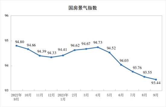 9月份,房地產(chǎn)開發(fā)景氣指數(shù)(簡(jiǎn)稱“國(guó)房景氣指數(shù)”)為93.44。