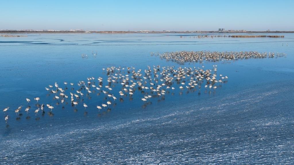 黃河呼和浩特段即將開河 俯瞰冰面碧綠如玉相當(dāng)壯觀
