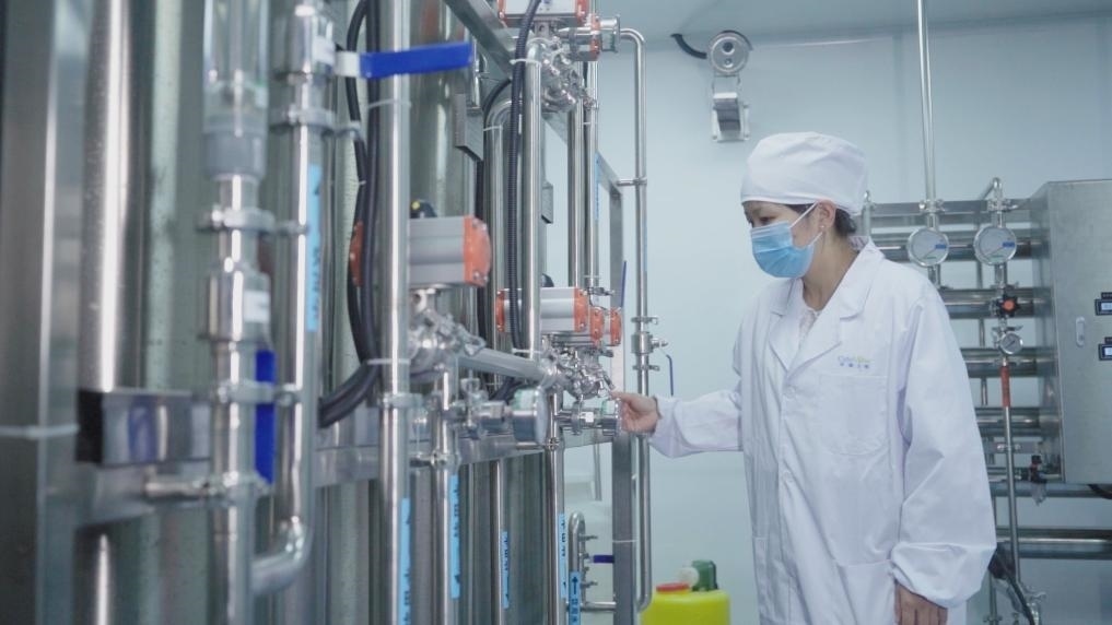 天津華龕生物科技有限公司員工在操作制水機設備。新華社記者 王寧 攝